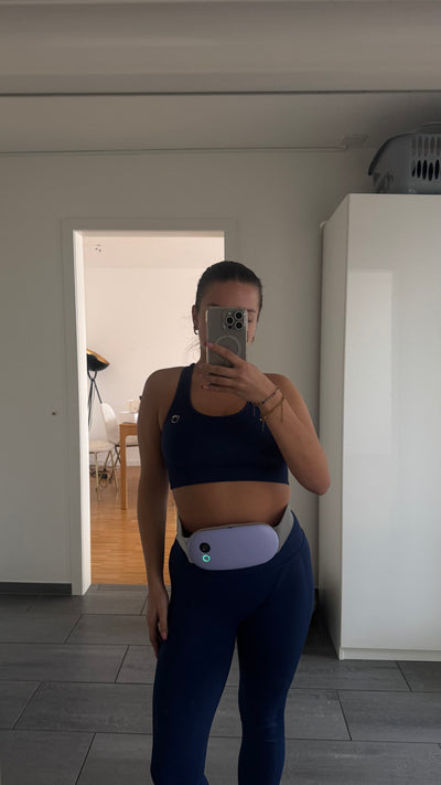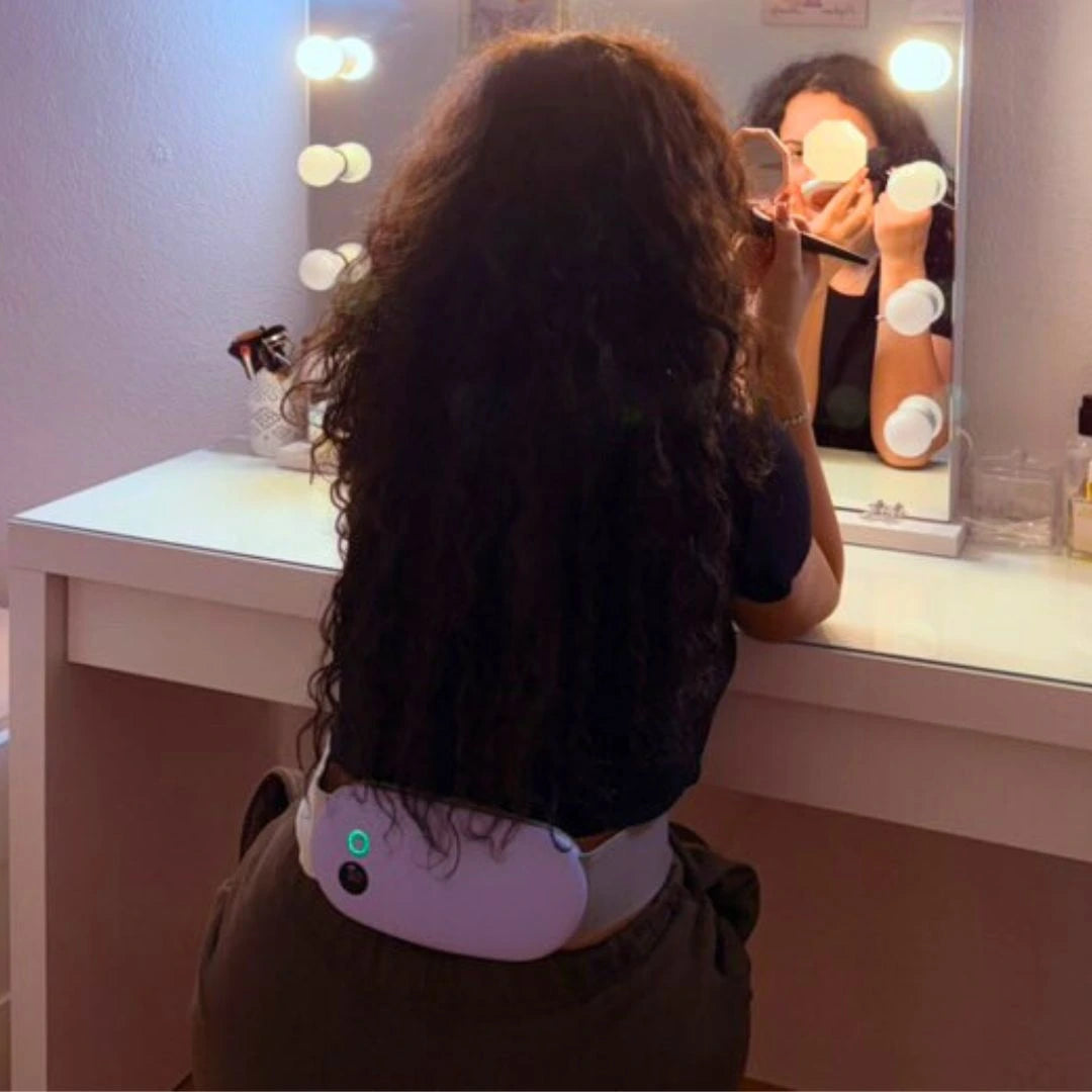Lege das Pad bequem um deine Taille, es passt sich deinem Unterbauch oder Rücken an.